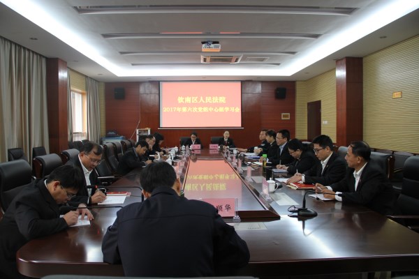 12月11日上午,钦南区人民法院召开2017年第六次党组中心组学习会,进一步学习十九大精神,并对近阶段工作作部署。会议由该院党组书记、院长何显锋主持,各党组成员、专职审委委员及中层正职领导参加了会议。